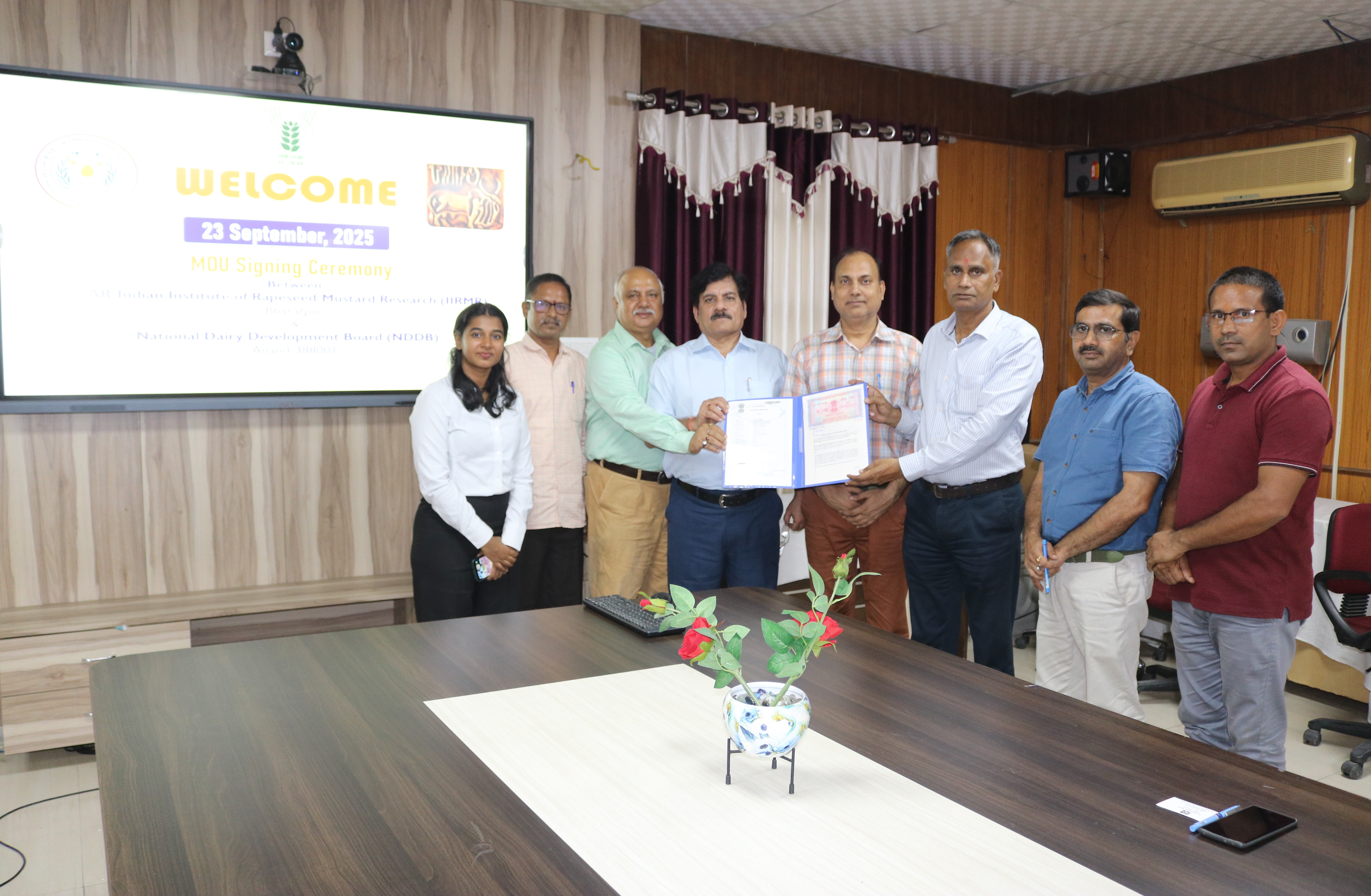 The MoU was formally signed by Dr. V. V. Singh, Director, ICAR-IIRMR, Bharatpur, and Mr. S. Rajeev, Executive Director, NDDB, in the presence of senior officials of ICAR-IIRMR.